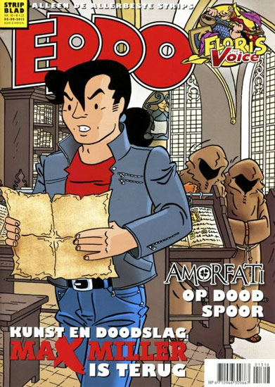 While Jonker had been a longtime contributor to Donald Duck and Tina, his name became more widespread in the Dutch comic community through his collaboration with Hans van Oudenaarden. In 2003, he replaced Koen Wynkoop as the scriptwriter for a series of comic book adaptations of the classic 1950s children's book series 'Bob Evers' (2003-2009) by Willy van der Heide. Starting with the second volume, Jonker's stories were serialized in the newspaper AD and then in comic magazine Eppo. Between 2003 and 2010, five book collections were published by Arboris and Boumaar. Also in Eppo magazine, Frank Jonker took over the scriptwriting of the action comic 'Max Miller', originally written by artist IJsbrand Oost himself. Jonker and Oost collaborated on the third and fourth installments, 'De Orde van de Blauwe Steen' (2013-2014) and 'Schaduwspel' (2016). In 2016, Jonker also wrote 'De Sibylle-codex', the second serial of the thriller comic series 'Hel' by Danker Jan Oreel.