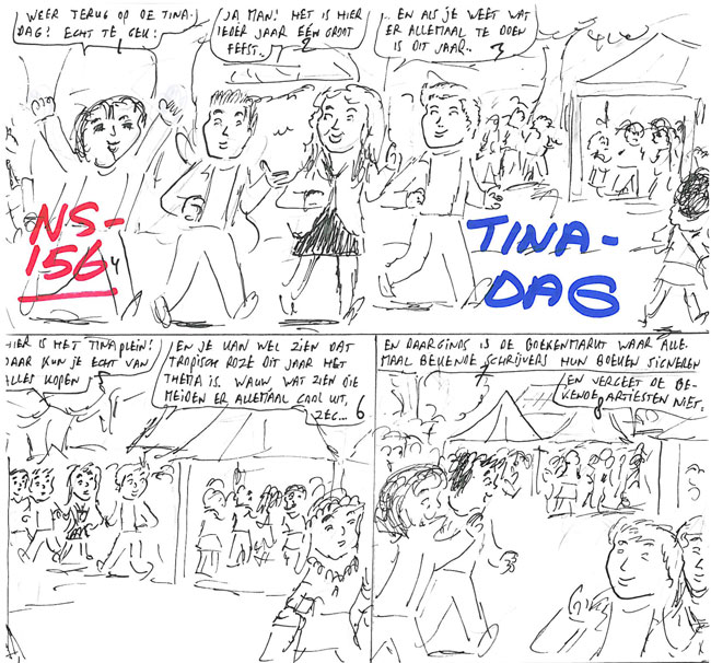 For the same publisher (VNU/Sanoma/DPG), Jonker has been a scriptwriter for girls' magazine Tina. Between 1996 and 2007, he provided a great many one-shot stories of four to eight pages, with no recurring characters. His comics, characterized by themes like mystery, contemporary drama and friendship were illustrated by Carry Brugman, Peter FitzVerploegh, René Bergmans, Aloys Oosterwijk, Fred de Heij, Richard van de Pol or Spanish artists from the Creaciones Editoriales agency, such as Edmond, Purita Campos, Juliana Buch, Maria Barrera, Jesus Redondo and Trini Tinturé. By request of the editors, he created the character 'Puck', who initially appeared in gag strips on editorial pages (1999-2002) and then in a couple of short stories and gags (2004-2005). The artists were, successively, Pieter Dorst (1999), Paul Hoogma (1999-2002) and Peter FitzVerploegh (2002-2005).