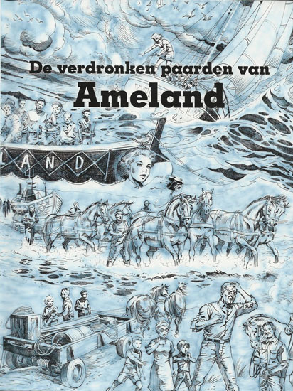 Since 2006, Jonker is also a frequent provider of comics and photo stories for the horse-related girls' magazine Penny by Holco Publications. Among his contributions are the photo comic series 'Duinmanege' (2014), gags with 'Penny de Pony', 'Rakker' and 'EzelPedro', and the serials 'Sarah de Shire' (2012) and 'Hecksehoef' (2012). Artwork is provided by a host of anonymous artists from Argentina, including Dolo Okecki and Sabrina Florio. Also for Holco Publications, Jonker wrote 'De Verdronken Paarden van Ameland' (2011), a true story comic that appeared directly in book format. The artwork was provided by Alberto Saichann and Eduardo Lago of the Argentinean Pulsar Studios. The book tells a tragedy on the Frisian island of Ameland, when eight horses drowned during a storm. On the island, horses are used to carry lifeboats into the water, four on each side of the undercarriage. On a stormy August day in 1979, the rescuers were unable to unhook the animals from the undercarriage before the lifeboat shot through the tide line. The undercarriage, weighing ten thousand kilos, pulled the animals into the depths. The events of 4 August 1979 were a collective drama that lives on in the minds of the people of Ameland to this day. To create his script, Jonker spoke with several eyewitnesses on Ameland, which gave the already well-known story a new perspective. The book's release coincided with the release of the Dutch youth film 'Penny's Shadow', which was loosely inspired by the disaster too.