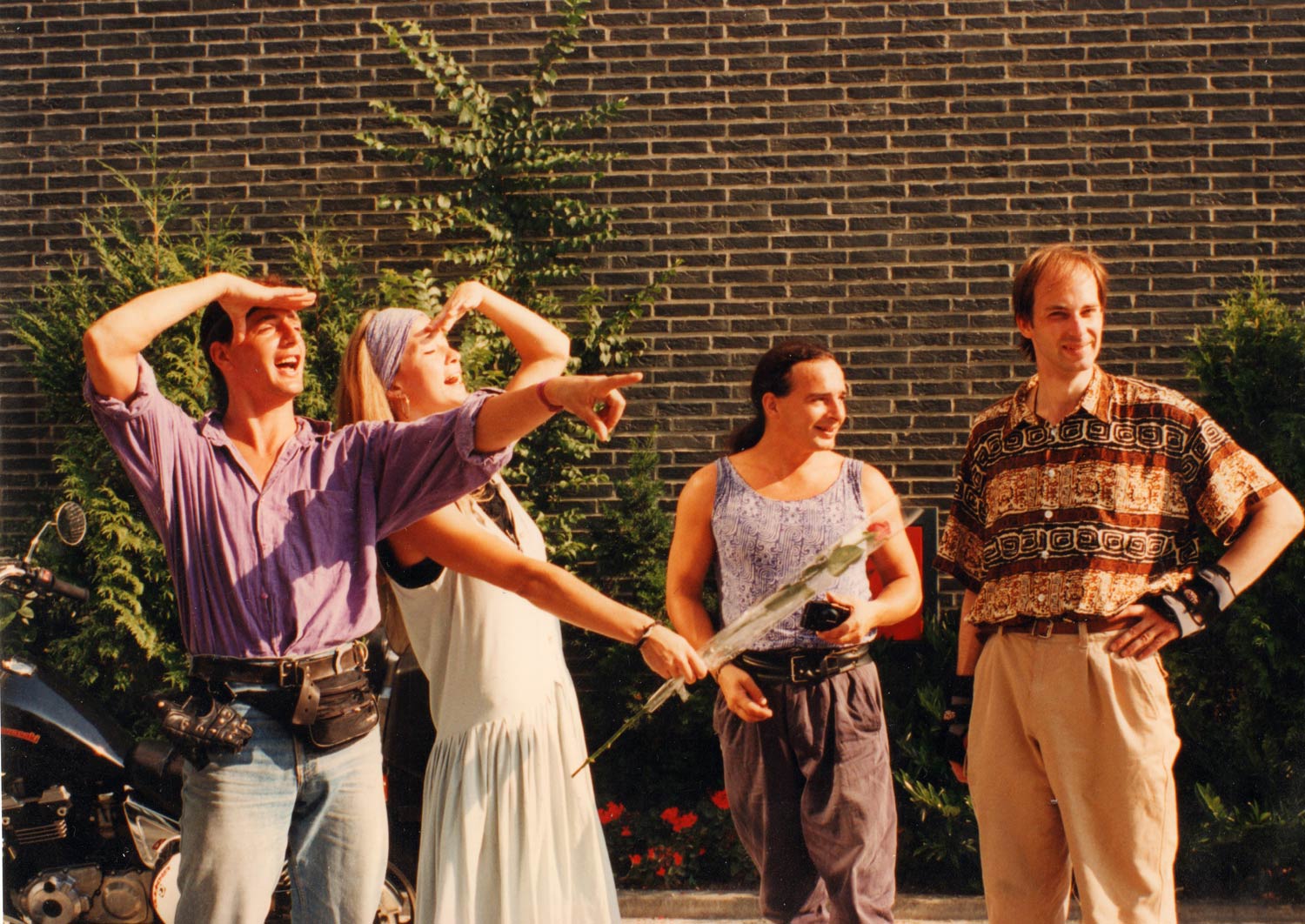 Frank Jonker (on the right) awaiting the arrival of Carl Barks to the Dutch editorial offices in 1994, together with Mau Heymans, Kirsten de Graaf and Bas Heymans.