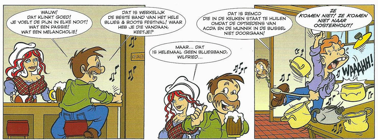 Over the years, Frank Jonker has co-created several comic features for additional magazines. For the Malmberg school magazine Okki, he created 'Luuk en Lotte', originally drawn by Giovanni de Reus (1997-1999) and then by Paul Hoogma (2000) and Gerben Valkema (2000-2001). With Remco Polman as artist, Jonker created 'Vera en Victor' (1999- ), a gag strip for the Dutch Society of Volunteer work (NOV). Appearing in publications like Sport- en Vrijwilligerskrant and an annual agenda, the gags bring Vera and Victor in all kinds of national and international situations in which volunteers are indispensable. In 2008, he succeeded Rob van Bavel as scriptwriter of the final strips with 'Mooie Keetje', a comic drawn by Dick Heins for Het Kanton, the regional weekly of the town of Oosterhout.