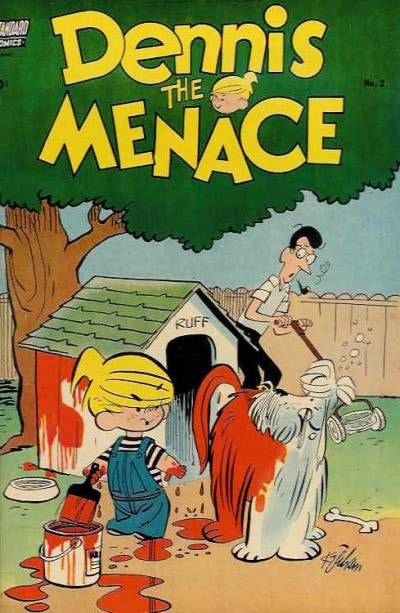 Besides his parents, the main victim of Dennis' "terror" is his next-door neighbor mister Wilson, a retired U.S. Postal Service worker with a sheer amount of hobbies. Dennis sees the grumpy pensioner as his best adult friend, and gladly interrupts him during his gardening, stamp collecting or other peaceful activities. Even though George Wilson rather ducks away whenever Dennis comes in sight, he secretly has a soft spot for the boy. Far more receptive to Dennis' unannounced visits is Mrs. Wilson, who treats him like the grandson she never had, spoiling him with freshly baked cookies and milk. Dennis' loyal sidekicks are Ruff, his faithful dog, and the slightly younger neighborhood kid Joey, who looks up to Dennis. The bespectacled Margaret acts as Dennis' nemesis. The bossy know-it-all secretly has a crush on him, and tries to elevate him to her own standards. She corrects his grammar, criticizes his manners and insults his scruffy dog, much to his dismay. Still, she stubbornly ignores Dennis' rebuffs, insults and putdowns. Also fancying Dennis is Gina Gillotti, an outgoing tomboy girl who accepts Dennis the way he is. Dennis likes her too, but is too young and innocent to realize he has a crush on her.