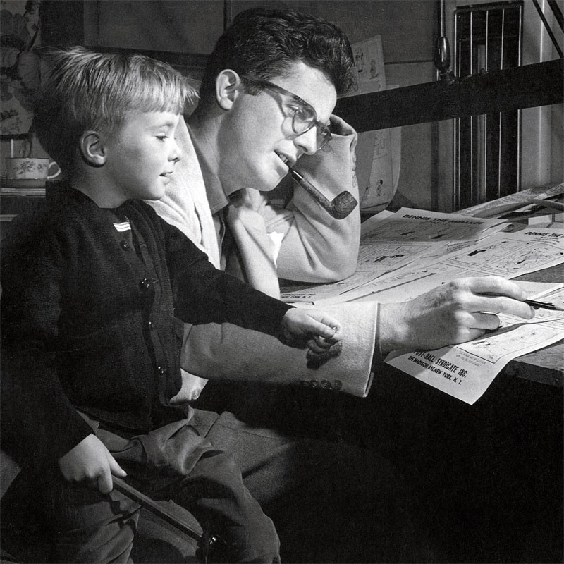 Hank Ketcham was an American newspaper cartoonist, and the creator of 'Dennis the Menace' (1951-    ). After stints in animation and newspaper cartooning, he took inspiration from his five-year old son to create his world-famous feature. What started as a syndicated single-panel cartoon, quickly turned into a multimedia franchise, spawning TV series, feature films, comic books and all sorts of merchandise.