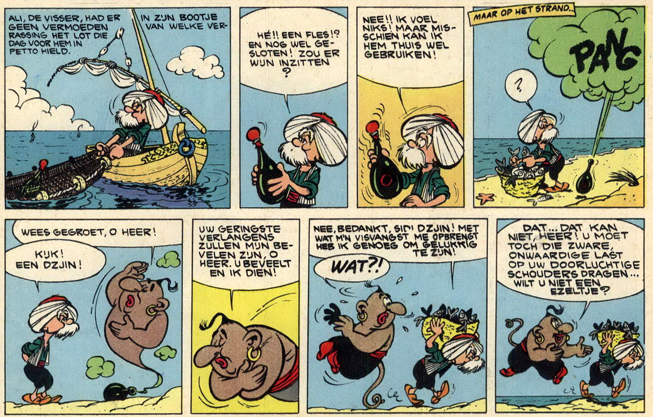 First appearance of Djinn in the Dutch-language Robbedoes #1372, 28 July 1964.