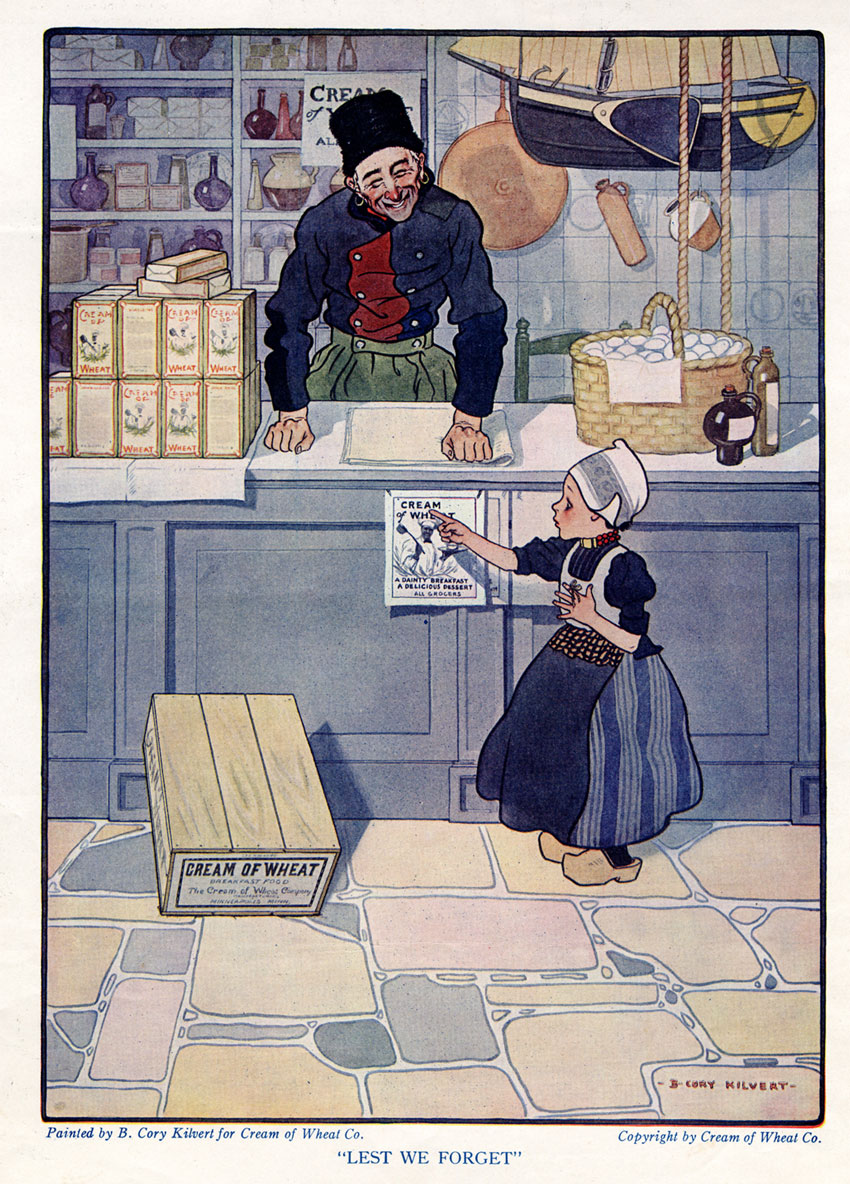 "Lest We Forget", full-page advertisement for Cream of Wheat (1907), which ran in magazines like the Saturday Evening Post.