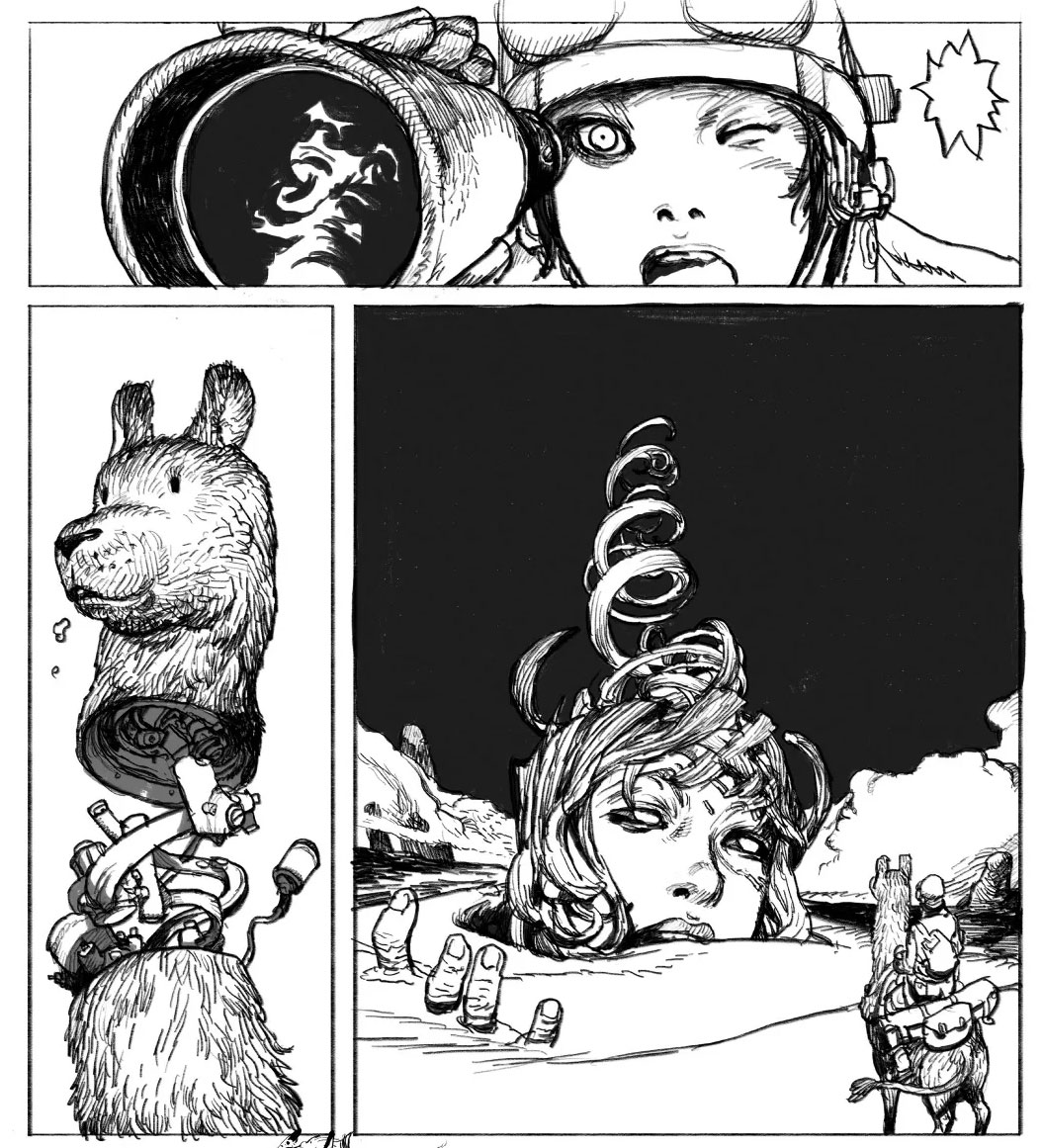 Together with writer Seung-Jin Park, Kim Jung-gi made the webcomic 'TLT - Tiger the Long Tail' (2008-2010). Set in an anthropomorphic animal world, the story revolves around Taeho, a tiger who struggles to find a job and suffers from recurring nightmares. One day, Taeho receives a mysterious letter. He is told that he has been "selected" and has to "get on the bus, next Saturday morning, if he wants to conquer the world." It turns out that Taeho's neighbor Rachel, also knows about the bus. Taeho finds out that the ride will take him to a training facility operated by the mighty corporation Daesan Pharmaceuticals. What he is supposed to do there, let alone how they got his address, remains unclear. But Taeho is determined to find out more.