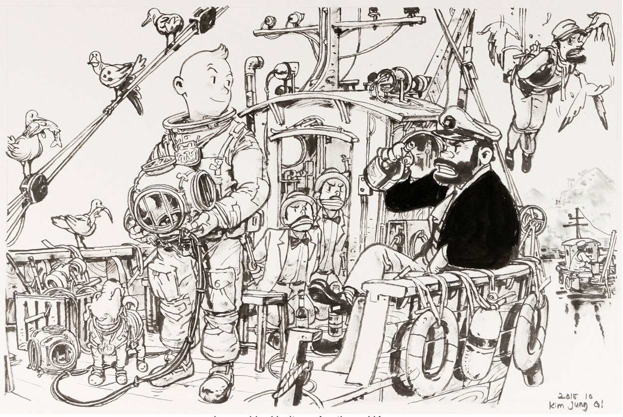 Homage to Hergé's Tintin characters, created by Kim Jung-gi in 2015.
