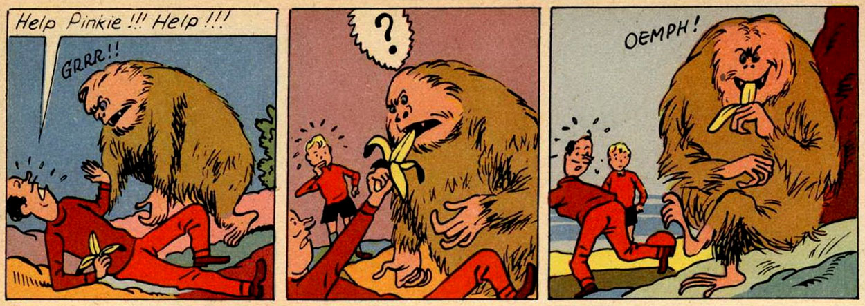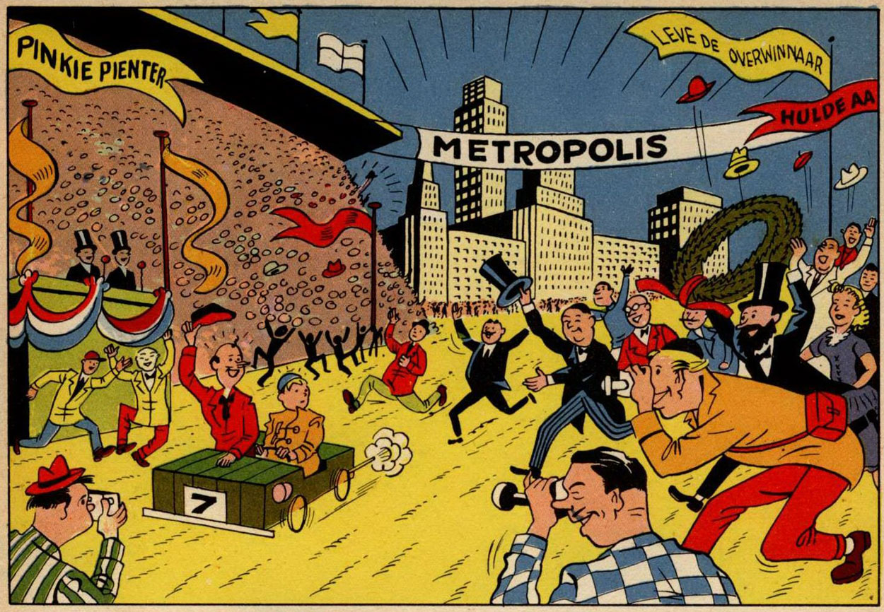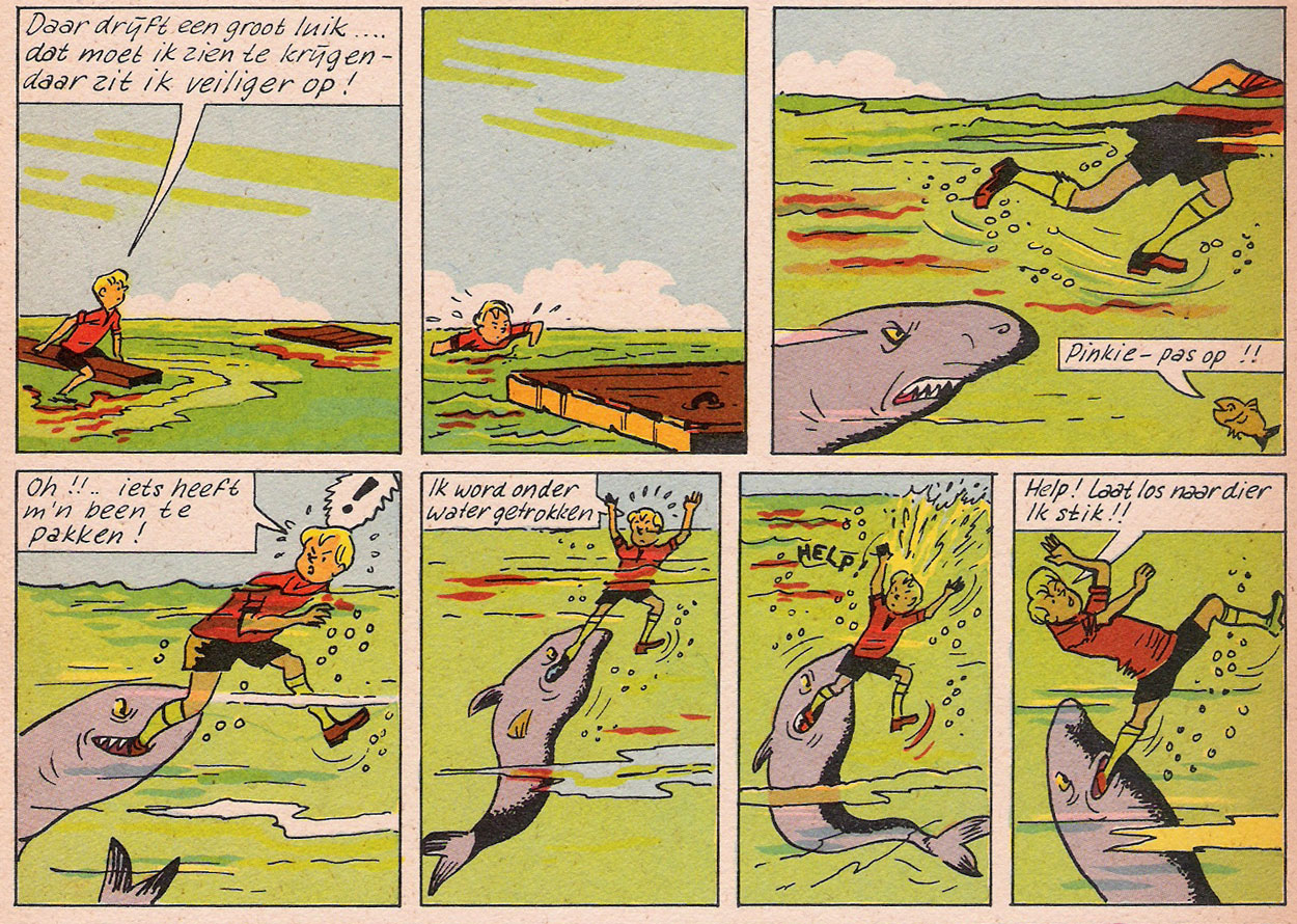 Despite all the criticism, 'Pinkie Pienter' remains an intriguing comic strip. As an amateur, Koeleman had little experience in creating comic stories. He basically imitated the look of a typical children's comic from the 1950s, without understanding the language of the medium. 'Pinkie Pienter' reads like a comic series created by a child, if it were capable of drawing like an adult. The thin narratives seem to be made up as the artist went along. Characters fall from one thrill into the other. Plot holes or believability are of no concern. Everything is drawn in function of the story: just recognizable enough so readers can understand what is going on. There are no preachy morals, no parental bonuses, not even a hint of irony. This gives his work a pure and authentic feel. All Koeleman wanted to do was create an entertaining children's comic for his nephews. In this regard he actually succeeded in his goal.