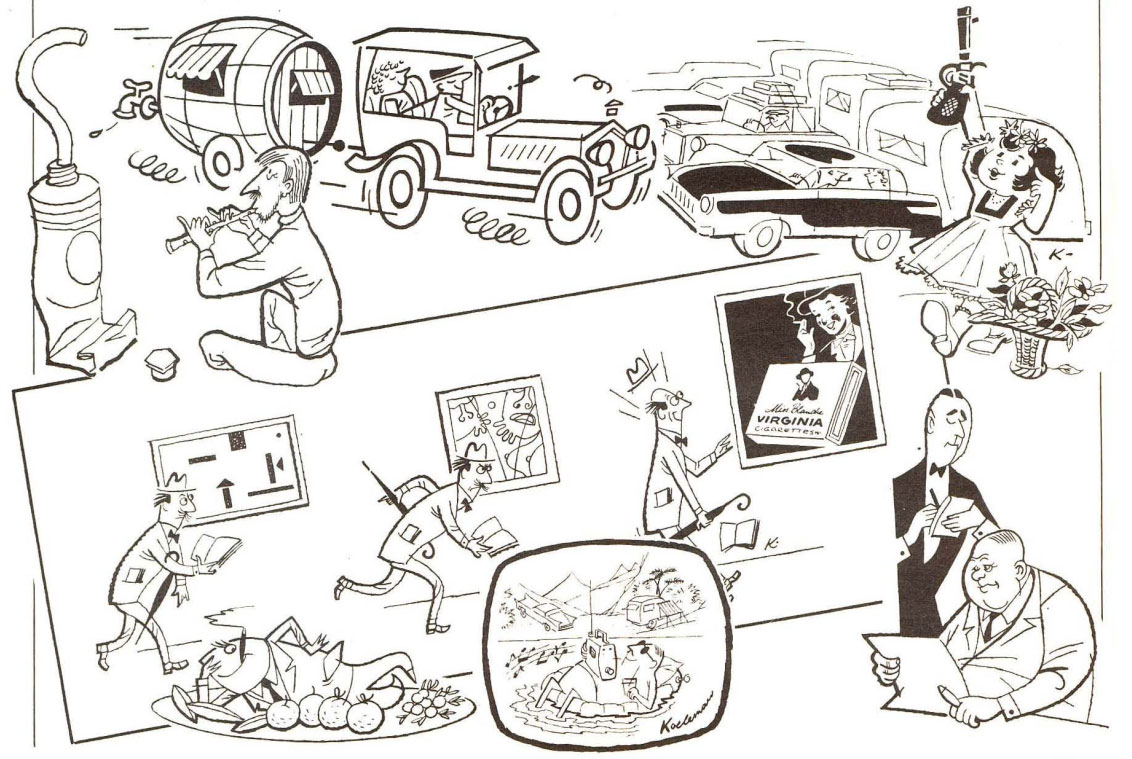A selection of Koeleman's advertising artwork, as published in Stripschrift #80.