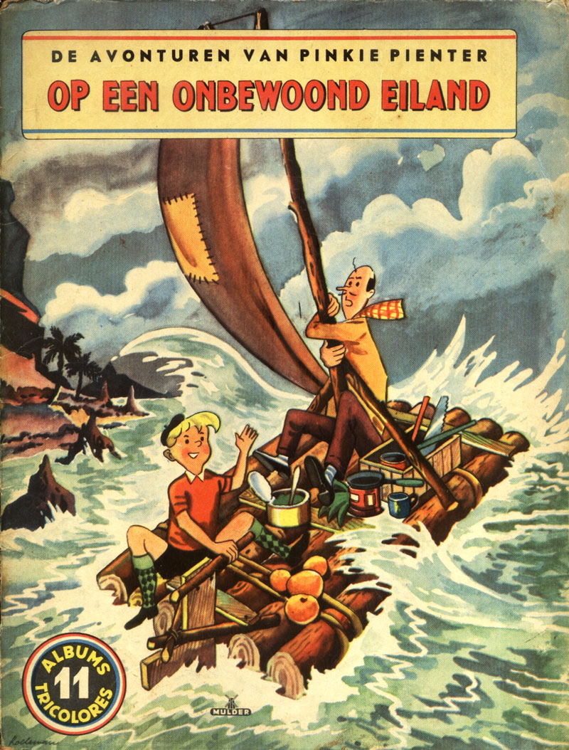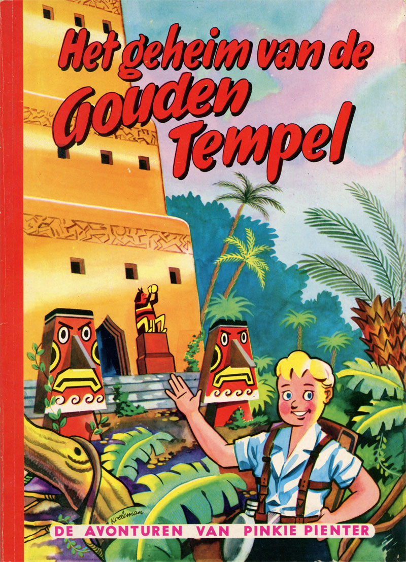 Koeleman might have never created a comic series if it weren't for his young nephews. One day in 1951 he visited his brother and heard that his sons read Hergé's 'Tintin'. However, they couldn't get through the stories, because the artwork was too fastidious and the plots too complicated. Koeleman decided to make a comic book especially for them. He imitated Hergé's artwork, but wrote a simpler story fit for younger kids. Instead of a young adult like Tintin, he made his protagonist a smart young boy, named 'Pinkie Pienter' (a "pinkie" is a "little finger", and "pienter" is Dutch for "smart"). Pinkie's best friend is the mustached violinist Floris Fiedel, and the antagonist of the series is the wicked crook Bul Bumper. Coincidentally, Flemish comic artist Pom created a series titled 'Piet Pienter and Bert Bibber' (1950-1995) around the same time, though they weren't aware of each other's work.