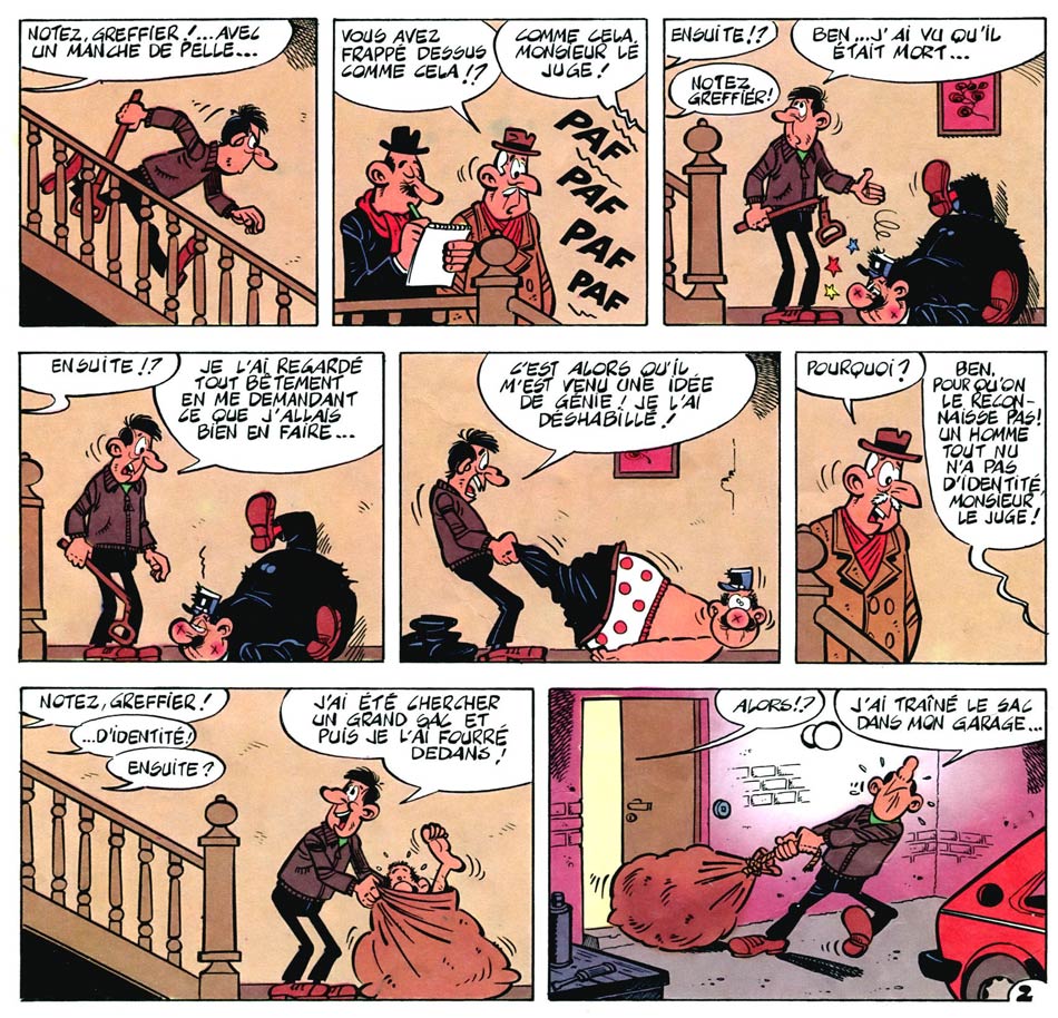 'L'Agent 212', crime scene reenactment in Spirou #2386 (5 January 1984).