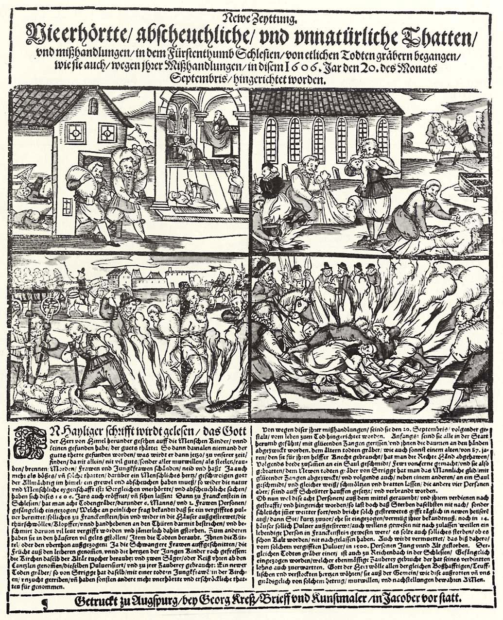 'Neuigkeiten aus Schlesien: Missetat einiger Totengräber, die am 20 September 1606 hingerichtet wurden'.