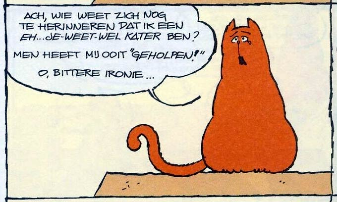 'Jan, Jans en de Kinderen'. The red cat, from gag #1121.
