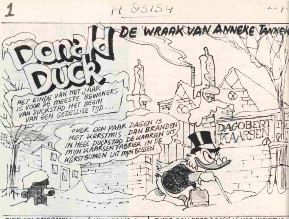 Opening panel of the script for Disney story H85154. The published story in Donald Duck #1988-50 had artwork by Mau Heymans.
