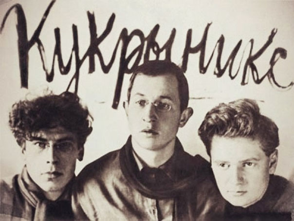 The oldest member of Kyukryniksy was Porfiri Nikitich Krylov (22 August 1902 - 15 May 1990) who hailed from Shchelkunovo, Tula. The second member was Mikhail Kupriyanov (21 October 1903- 11 November 1991), born in Tetyushi in the province of Kazan, and the third and youngest artist was Nikolai Sokolov (21 July 1903 - 17 April 2000), a citizen from Tsaritsyno, close to Moscow. All three grew up in Czarist Russia. When the Russian Revolution broke out in 1917, the men were around 15 to 16 years old. Russia transformed from a monarchy into the first Communist state in the world. In 1922, the three men met each other as students of the Moscovian art and technical school VKhUTEMAS.