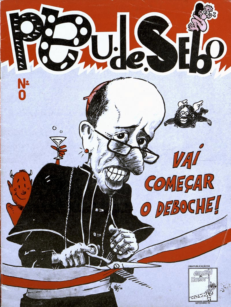 The dummy issue of Pau-de-Sebo. The cover shows a caricature of Don Lucas Neves, then prime Archbishop of Brazilian Catholic Church, saying: "The debauchery is about to begin!".