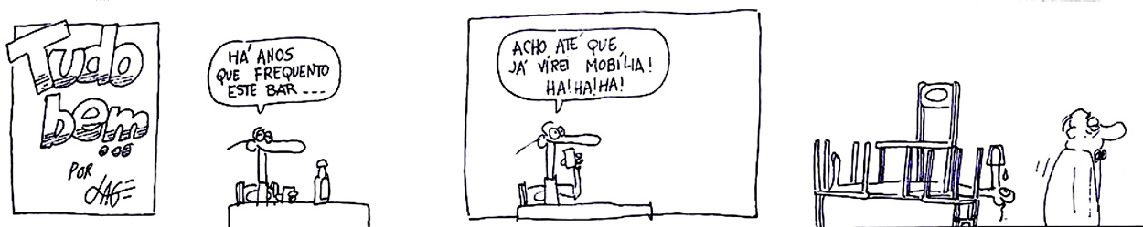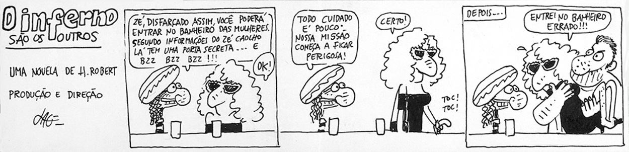 Lage's association with the Tribuna da Bahia began in 1969, shortly after the paper's launch, and lasted for the next thirty years. Lage's strips and cartoons also appeared in the paper's weekly supplements like A Coisa (32 issues, 1975-1976) and Na Era dos Comics (5 issues, 1977), which served as breeding grounds for local Bahian talent. Lage, as well as Nildão and Setúbal, established themselves as keen observers of Bahian social life and politics. With reserved temperament, but a loose and iconoclastic temperament, Lage was a sharp critic of politicians and rulers.