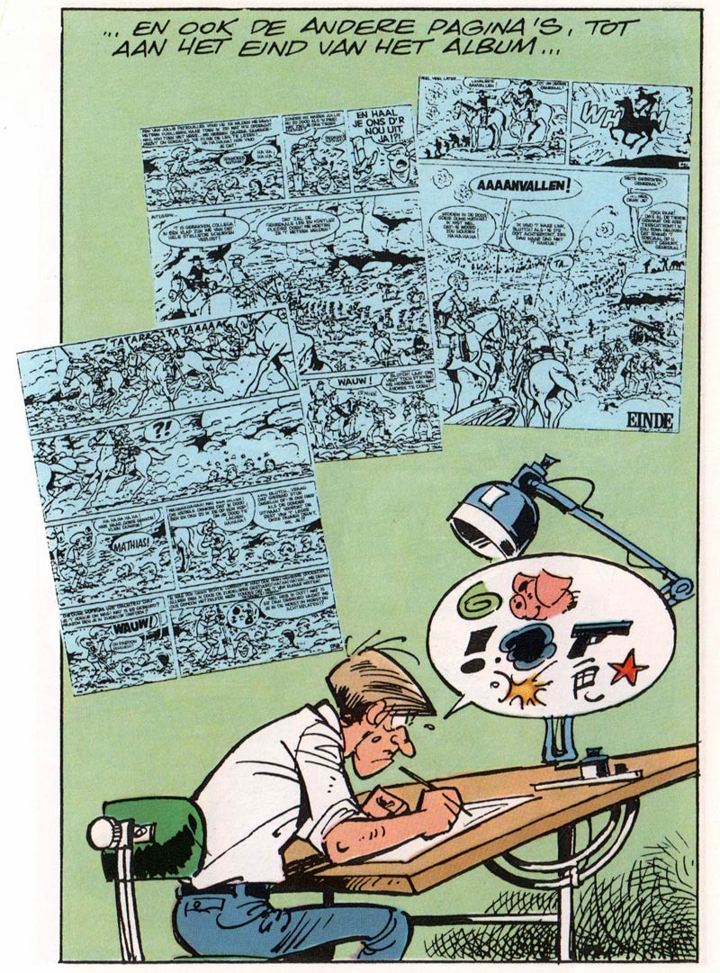 As the episodes progressed, other colleagues made guest appearances - always under their own name - most notably scriptwriter Cauvin, but also André Franquin, François Walthéry, Laudec, Jean-Claude Fournier, Berck and publisher Charles Dupuis. 'Pauvre Lampil' appeared irregularly between 1973 and 1994 - with a handful of new episodes in 2003 and 2006. In Dutch, the series ran under the title 'Arme Lampil'.