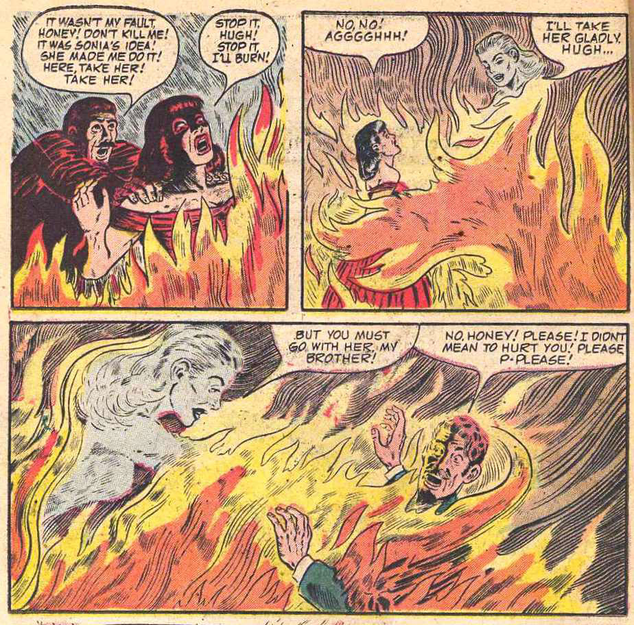 Not that successful with newspaper strips, Ken Landau found more lucrative jobs drawing comic books. In 1952 and 1953, he worked for Lev Gleason Publications, drawing romance stories for the Lover's Lane title, and also some crime tales for Crime Does Not Pay and Crime and Punishment. He also did a story for Charles Biro and Norman Maurer's science fiction feature 'Rocky X of the Rocketeers', printed in Boy Comics. During this period, Landau also worked occasional jobs for Timely Comics (stories for Adventures into Terror, Spy Cases), Pines (Exciting War), St. John Publishing (Authentic Police Cases) and Harwell Publications (Dear Lonely Hearts, All True Romance, Horrific, Weird Terror), before becoming a regular artist with the American Comics Group (ACG).