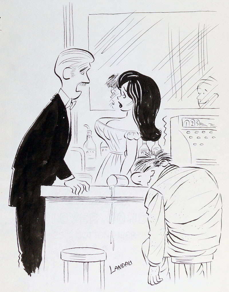 Kenneth Landau was an American comic artist and animator, who enjoyed a long and versatile career. In animation, he has worked for such studios as Disney, DePatie-Freleng, Hanna-Barbera and Cambria. His newspaper cartooning work included writing and drawing the obscure gag comic 'Lucky' (1945-1946) and being ghost artist on the 1952-1955 newspaper comic adaptation of the radio and TV show 'Dragnet'. Between 1951 and 1964, he also worked in comic books, drawing stories for horror and romance titles by Lev Gleason and the American Comics Group, as well as stories with Hanna-Barbera characters for Dell Comics. Ken Landau additionally made erotic cartoons for Hustler magazine.