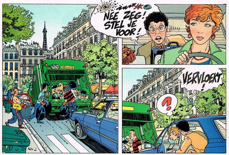 Laudec's work was noted by Mittéï who proposed him to work on a comics project. This resulted in the series 'Les Contes de Curé-la-Fl'ûte', that was published in Spirou magazine from 1979. Initially a series of short stories about everyday life in a small town, the main characters eventually starred in two longer stories, both set in the second World War ('L'an 40' in 1983 and 'Marché Noir et Bottes à Clous' in 1985). By 1985, Laudec was also helping Walthéry with the backgrounds in a couple of 'Natacha' and 'Tchantchès' stories.