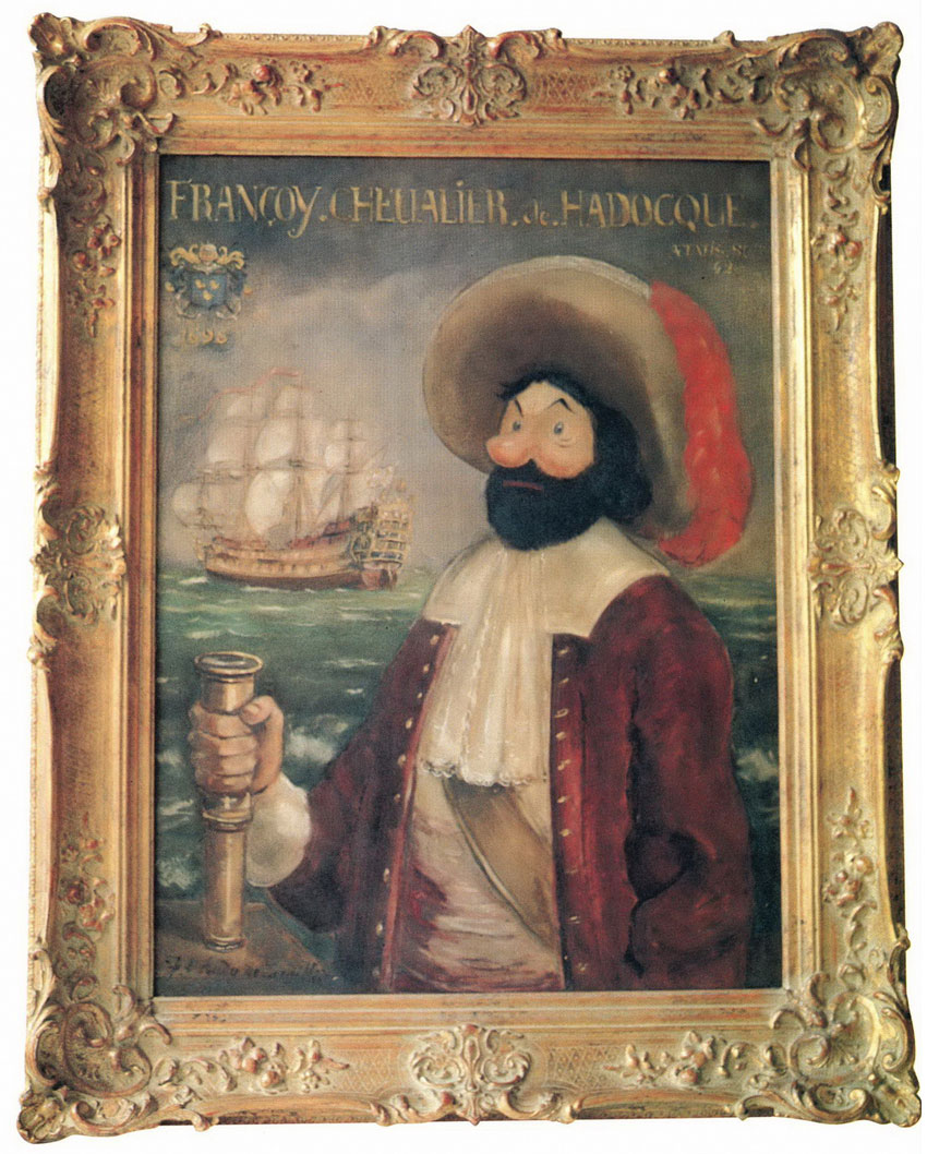 Portrait by Jacques Laudy of Knight François Hadoque, based on the character from the 'Tintin' stories by Hergé.
