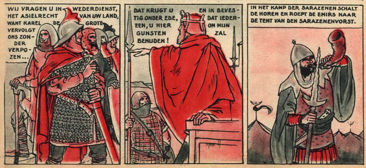 Besides Tintin, Laudy was additionally present in the Flemish magazine Ons Volkske between 1951 and 1956 with shadow-play comic pages. In the period 1956-1965, he also appeared in the newspaper Le Soir with occasional historical stories. For Petits Belges/Tremplin, he illustrated episodes from the life of emperor Charles V ('L'Histoire comique de Charles Quint' (1954-1955) and comic stories reworkings of Belgian folk legends (1956-1958). In 1987, these legends were reprinted in the newspaper La Libre Belgique under the title 'Légendes de Belgique'.