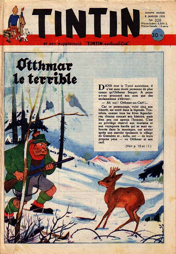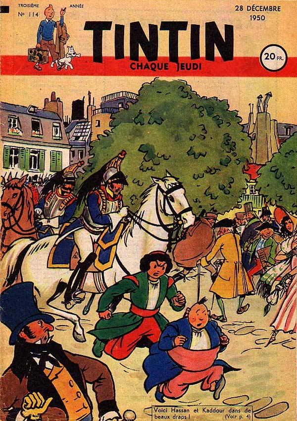 Cover illustrations for Tintin magazine, respectively issue #114 (28 December 1950) and #220 (8 January 1953).