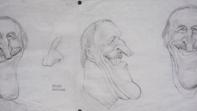 Sketch by Roger Law of TV personality Bruce Forsyth (whose name is misspelled on the drawing).
