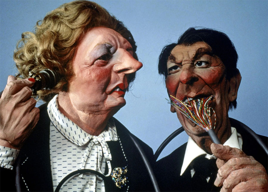 'Spitting Image' puppets of U.K. Prime Minister Margaret Thatcher and U.S. President Ronald Reagan.
