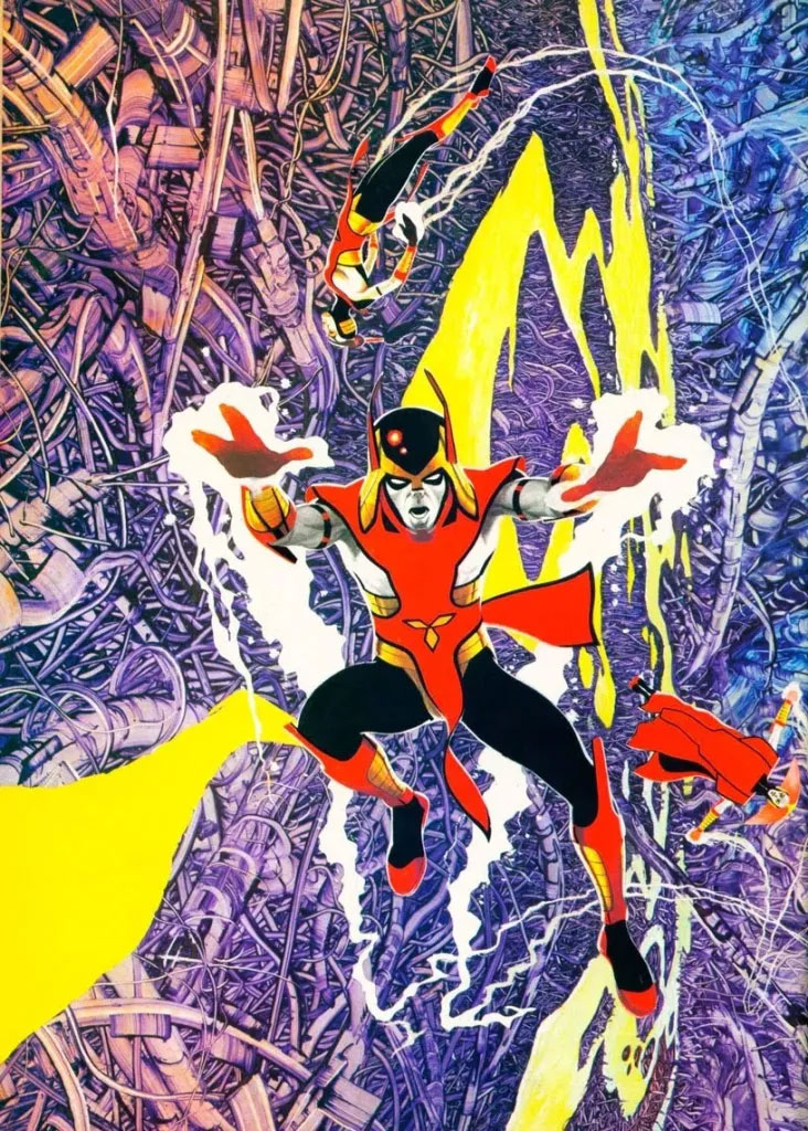 In 1982, Leach became an art director at Quality Communications, a new publishing company founded by former Marvel UK editor Dez Skinn. In March 1982, Alan Moore launched a reboot of the British superhero comic 'Marvelman', created in 1954 by Mick Anglo. In his original incarnation. Marvelman was more or less a rip-off of the American superhero 'Captain Marvel', created by Bill Parker and C.C. Beck. Since 1963, no new episodes had been made. Moore's version debuted in Quality's brand new comic magazine Warrior (March 1982). After some initial troubles finding an artist for the series - Dave Gibbons and Brian Bolland both declined - Garry Leach showed interest and got the job. The new Marvelman is a tortured individual, plagued by recurring nightmares and migraine attacks, who decides to find out the truth about his mysterious past. As the perfectionist Leach had difficulties meeting his deadlines, the feature was handed to Alan Davis from Warrior's sixth issue on. He moved on to create Warpsmith (1983) with Alan Moore, a character who first starred in his own feature before becoming a secondary character in 'Marvelman'.