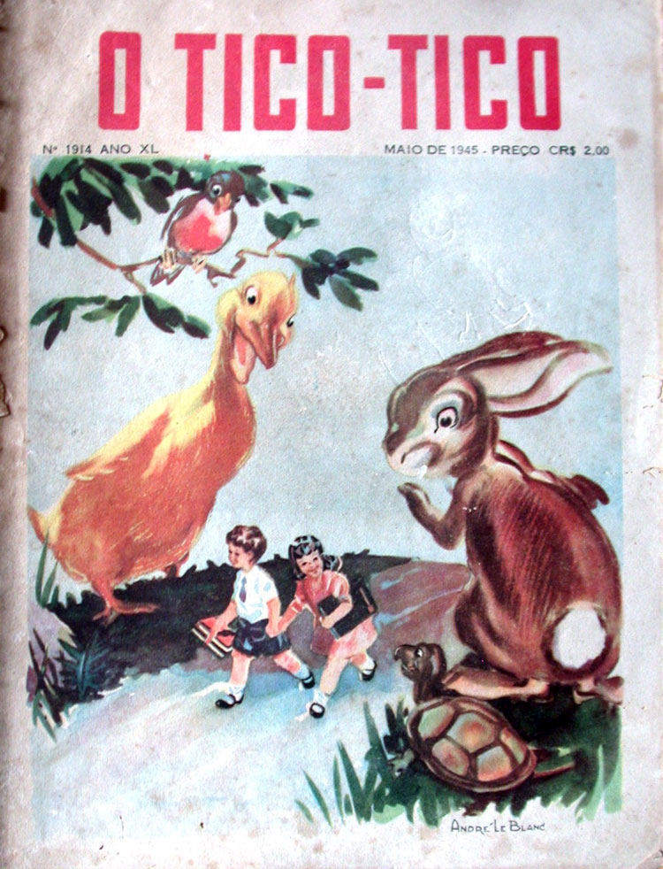 With his regular assignment in the USA coming to an end, LeBlanc began exploring the Brazilian market. One of his first publications there was the cover for issue #1914 of the children's magazine O Tico-Tico (May 1945). He then also illustrated double-page short story spreads for the weekly magazine O Cruzeiro, and contributed to the cultural monthly A Cigarra. He later also did commercial art assignments through the São Paulo branch of the J. Walter Thompson advertising agency. For Editora Brasiliense, he made the interior illustrations for almost all the re-editions of the children's books by Monteiro Lobato (1882-1948); the cover drawings were by Augusto Mendes da Silva (AKA Augustus/Avgvstvs).