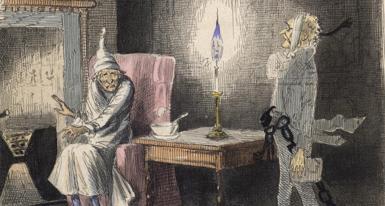 'A Christmas Carol' (1843). Ebenezer Scrooge meets the ghost of his former partner, Jacob Marley.