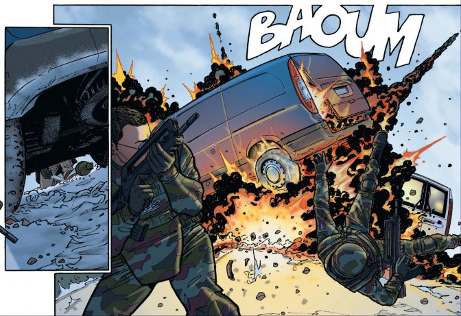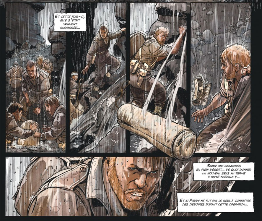 In between 'Sisco' episodes, Thomas Legrain teamed up with scriptwriter Stephen Desberg to create 'Bagdad Inc.' (Lombard, 2015), a techno-thriller based in war-torn Iraq. Since 2017, Legrain has been working with writer Vincent Brugeas on 'The Regiment', another Lombard series telling the story of the legendary SAS unit operating in North Africa during World War II. Both projects were released in English by Europe Comics as well.