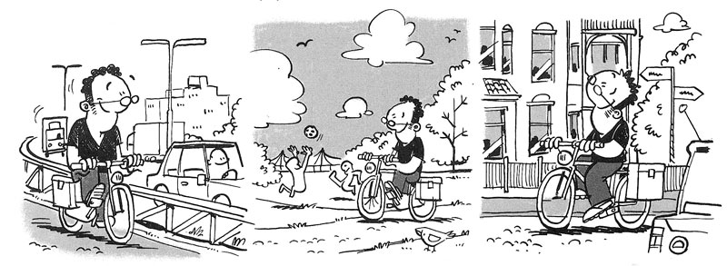 René Leisink is a comic artist and cartoonist from Nijmegen and one of the founding members of Studio Noodweer. Having drawn comics since an early age, he studied to become a drawing teacher. After being one of the editors of the comic fanzine De Stripper, he founded Noodweer together with Rob Derks, Jan Dirk Barreveld, Koert Stavenuiter and Michiel van de Vijver. His comic strips have been published in the free dailies Metro ('Paul Flekx', 'Ted') and Sp!ts ('Distelhof'), and also in his first album 'Waterproef', which he made together with Michiel van de Vijver and was published in the Spring of 2003.