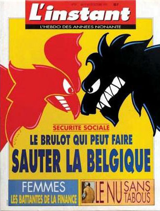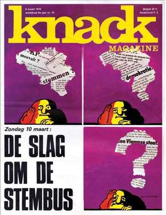 Cover for Knack about the Belgian elections (6 March 1971) and for L'Instant about the linguistic divide in Belgium (17- 23 October 1991).