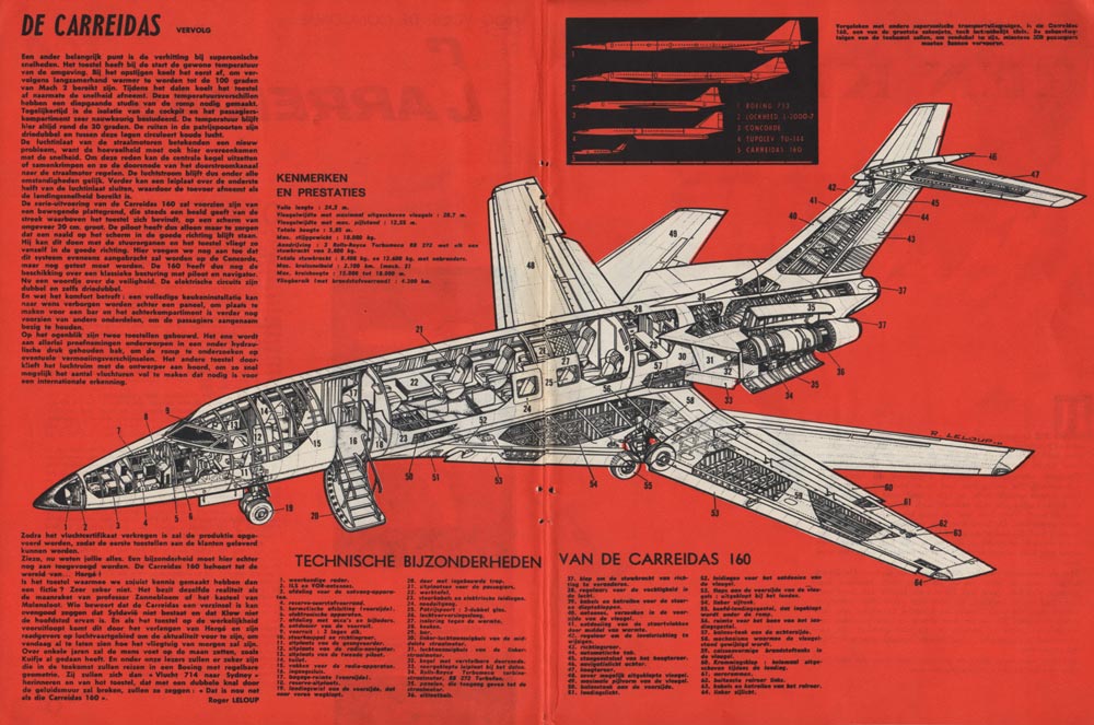Leloup's cross-sectional view of the Carreidas jet, published in Tintin/Kuifje #50 (13 December 1966).