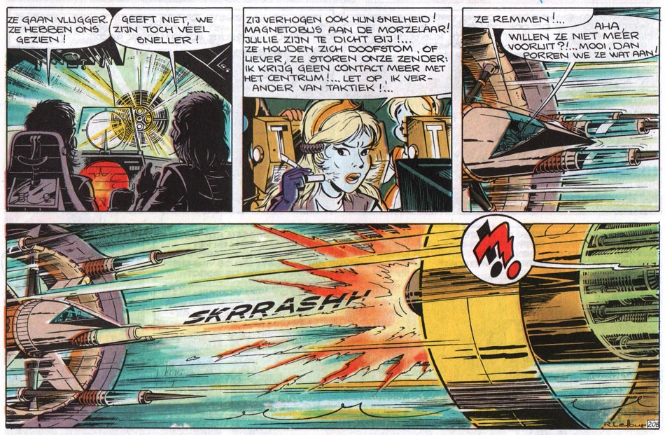 Since the debut of 'Yoko Tsuno' Roger Leloup remained loyal to his signature series. With the exception of the first short stories in collaboration with Maurice Tillieux, Leloup always refused working with assistants. He solely provides scripts and artwork, both the penciling and inking, although Béatrice of Studio Leonardo takes care of the coloring. Well in his eighties, Leloup continues to make new adventures and expand Yoko's universe. He further deepened her younger years in the novel 'L'Écume de l'Aube' (1991). It was published in the collection Traveling of the publishing house Duculot, which also released an earlier sci-fi novel by Leloup, 'Le Pic des Ténèbres' (1989). Yoko and Paul furthermore hosted a section about remote controlled model airplanes in Spirou called 'Planeurs téléguidés' (1978-1980). Attempts to adapt 'Yoko Tsuno' in an animated series were ill-fated, as the results couldn't meet with Leloup's perfectionist standards.
