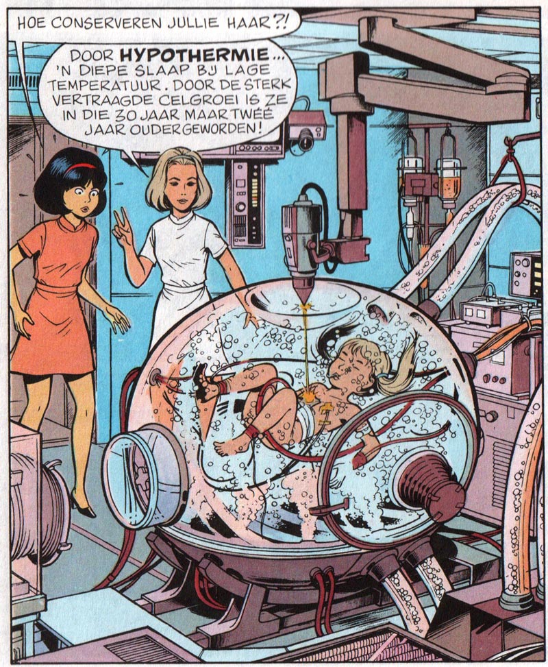 At the outset the series was built around a trio, but Vic and Paul were quickly reduced to secondary characters while Yoko took center stage. 'Yoko Tsuno' was part of a wave of female lead characters which populated the pages of Spirou magazine from the mid-1960s on, such as Raymond Macherot's 'Sibylline' 1965), Jidéhem's 'Sophie' (1965), while 'Yoko Tsuno' and François Walthéry's air hostess 'Natacha' both debuted in 1970. Of all these series, 'Yoko Tsuno' embodied the spirit of emancipation and feminism the most. Leloup created a strong independent Asian woman, who lived and worked in Europe. The expat, as we would now call her, was also a specialist in electrical engineering, an unlikely job for a female character in that time period. Yoko was also not a comic hero in the traditional sense. She is not infallible and therefore one-dimensional, but a human with emotions and doubts.