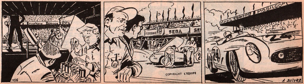 In addition to newspapers, Lem also created comics for magazines. The magazine Paris Jeunes Aventures, published by SAGE, ran two of his comic serials about a female sports journalist 'Patty Rédacteur Sportif' (1950) and ' Patty Suit Le Tour de France' (1950). Between 1950 and 1955, Lem appeared in 34 Caméra, a pocket-format monthly comic book published by Éditions Vaillant. After contributing two short comic stories with writer Pierre Portier, he illustrated editorial sports sections by either Pierre Portier, Robert Vergne or Pierre Chany, and created one to five-page comic biographies of sports champions.