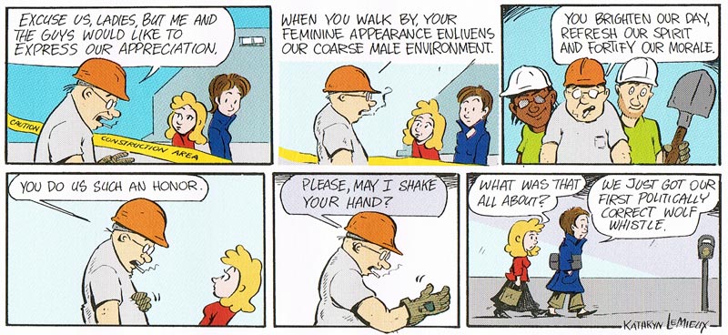 Kathryn LeMieux started her career in comics in the 1980s, contributing to alternative comic books such as Wimmen's Comix. Between January 2000 and April 2009, she was one of the original six female comic artists who make the newspaper strip 'Six Chix', together with Isabella Bannerman, Margaret Shulock, Rina Piccolo, Ann Telnaes and Stephanie Piro. Each woman drew the strip on a different day (Kathryn had the Fridays) and they alternated on Sundays.