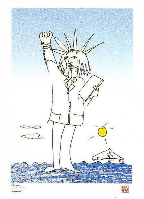 Now in his thirties, finding relative stability in his relationship with Yoko, Lennon mellowed out. He dismissed and apologized for his abusive, irresponsible behavior in previous relationships, while chasing his inner trauma's away through Arthur Janov's "primal scream" therapy. In 1975, he put his musical career on hold for five years to focus on raising his new-born son Sean. This time, he was more ready for this parental role than he had been with his first son, Julian. During this period, Lennon made more private drawings again, depicting him, Yoko and Sean as a happy family. He often scribbled during business meetings or while waiting for restaurant meals. If somebody wanted a drawing, he simply gave them away. During summer vacations to Karuizawa, Japan, Lennon also drew a lot. He sketched visual reminders on how to pronounce certain Japanese words and what they meant. These drawings were later collected in the book 'Japan Through John Lennon's Eyes: A Personal Sketchbook, 1976-1977'. His drawings for his son Sean were collected in 'Real Love - The Drawings for Sean, 1975-1980'. In 1978, John's first wife, Cynthia Lennon, also released an autobiography, 'A Twist of Lennon' (Avon, 1978), partially illustrated with her own drawings. Lennon tried to prevent its release.