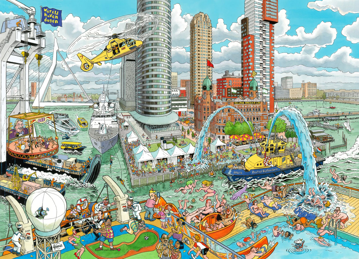 Cartoon of the Rotterdam harbor.