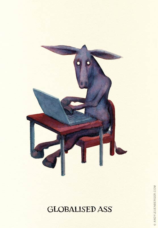Since 2012 he has been working on his 'A Bestiary by Andy Leuenberger' series, which presents several animals as metaphors for human comedy. The first 'Bestiary' mini-comic was published in 2016. Some of his other popular titles are 'The Invincible' (2006), 'Emotional Avtomat' (2010), 'Roachman' (2013, 2015) and 'Planet of the Organic' (2015). 'The Death of Comic' (2014) presented a mash-up of Leuenberger's cartoons, artwork and sketchwork since the early 1990s.