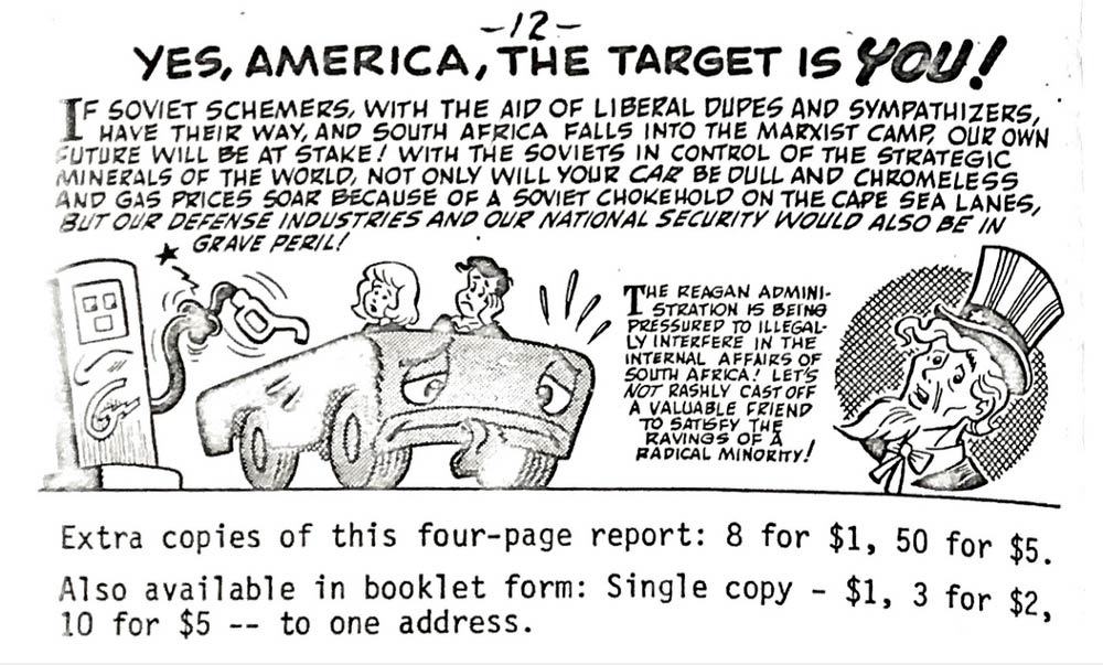 First appearing as early as 1966, the often 12-page booklets showcase Lockman's fundamentalist Christian views through a cute and child friendly drawing style. In 'TULIP', Lockman attempted to prove the five points of Calvinism, while 'A Car Story' allegorized the sin and fall of man and his salvation through anthropomorphic cars. His tracts were not without controversy, as proven by his pro-apartheid comic 'Who's Behind the South African Crisis?', distributed in June 1985 as a supplement to newsletters published by the far-right organization Canadian League of Rights. His tract 'The AIDS Plague' (1986) warned against promiscuity, dealt with the "Biblical prohibitions against homosexuality" and suggested to quarantining people with AIDS. Lockman also illustrated a number of tracts by Walter H.J. Lang, the executive of the Bible-Science Association (BSA) and a tireless promoter of creationism. These included 'Was God an Astronaut?', 'Need We Fear Another Ice Age?' and 'Is the Present the Key to the Past?'.