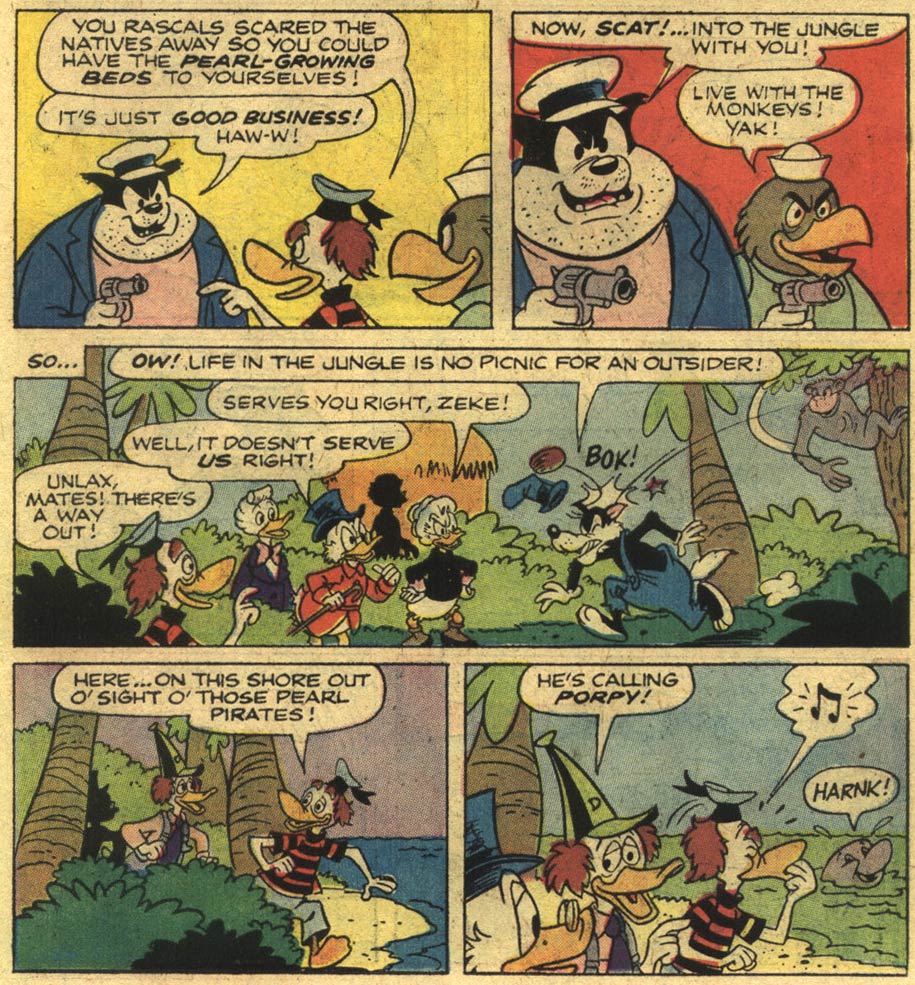 As the core of his production was during the 1960s and 1970s, Lockman has never received much praise for his Disney stories. The general opinion is that the quality of Western's Disney line was in steady decline during this period, especially after the retirement of the legendary Carl Barks. In 1967. Lockman was additionally largely out of the picture when new American authors like Don Rosa and William Van Horn put their personal mark on the Duck characters for other Disney licensees during the 1980s and 1990s. However, the sheer quantity of Lockman's work is impressive - the man once claimed he wrote one script every weekday, which could run up to a career-spanning total of about 8,000 stories! To discard him as merely a hack writer would do him no justice. Lockman was responsible for introducing new characters to the Disney universe, some of which are still in use today by European licensees. While Moby Duck seems to have sailed off for good in the late 1970s, Emil Eagle and the Beagle Brats are still disturbing presences in present-day Disney comics.