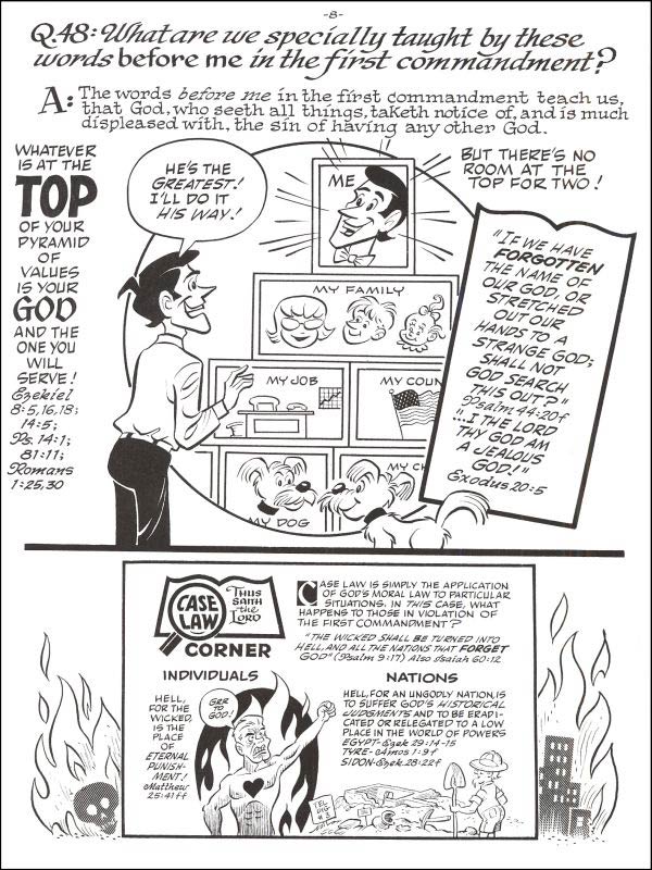 From: 'Biblical Economics in Comics' (1985) and 'Westminster Shorter Catechism with Cartoons Book 2' (1996).
