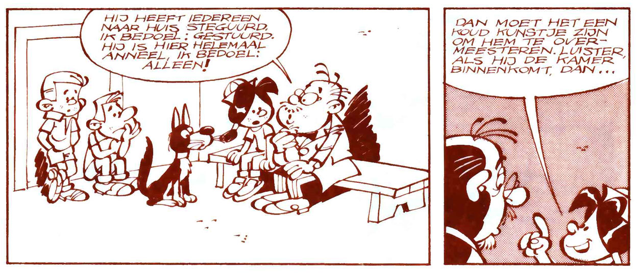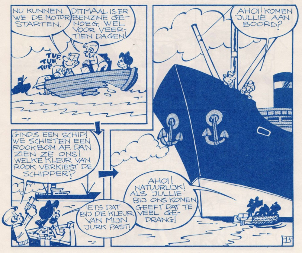 Between 1963 and 1972, the Arle duo made illustrations, cover drawings and comics for Altoria's children's magazines, most notably Zonneland. Their first serial was the stand-alone story 'Wim en Eric: De Verdwenen Sloep' (February-September 1965), about two righteous boys who visit their uncle Walter in an English coastal town. It was followed by the adventures of 'De Zwartepinken' (1965-1972). Eleven serials of this kids' gang were made in cooperation with scriptwriter Maurits Renders, which were also published in Zonneland's French-language counterpart Tremplin. The magazine's edifying and pedagogically justified tone was strongly reflected in the stories. The main heroes Marleen, Erik and Hugo were presented as average kids with normal parents and normal homes. The publisher emphasized that their unusual adventures certainly cannot happen in real life.