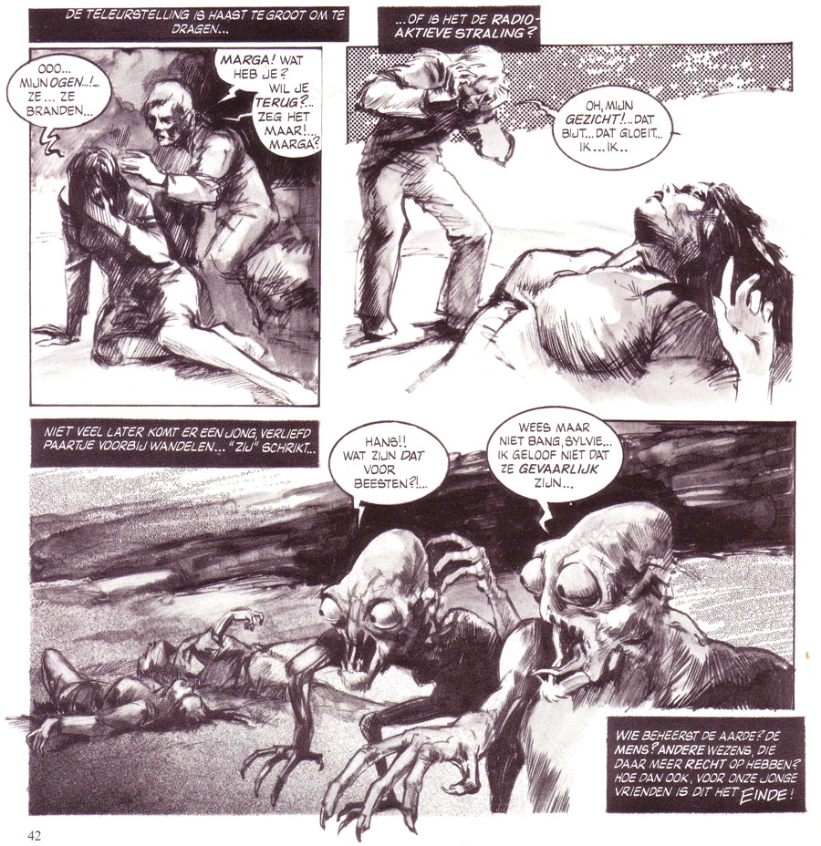 In 1974, Looman also drew a short horror/sci-fi comic story for the sole issue of Baberiba magazine, 'Jacht Naar Het Geluk', written by editor Jan van Erp. Artwork for a third volume of 'Dzjengis Khan' and a planned story for the canceled second issue of Baberiba remained unpublished. After 1975, Jos Looman made no further comics. Instead, he became a prominent illustrator for the popular science magazine Kijk, roughly until 1982. In the 1980s, Jos Looman left illustration and moved to New York to become a successful interior designer.