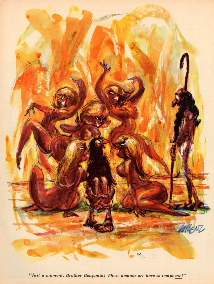 Lorenz was a prolific book illustrator. He livened up the pages of children's books like Richard J. Margolis' 'The Upside-Down King' (Windmill Books, 1971), Jan Wahl's 'Sylvester Bear Overslept' (Parents Magazine Press, 1979), Bonnie Pryor's 'Mr. Munday and the Space Creatures' (Simon & Schuster, 1989), Charles Keller's 'Driving Me Crazy: Fun-On-Wheels Jokes' (Pippin Press, 1989), 'Remember the A La Mode: Riddles and Puns' (Prentice Books, 1986), 'Waiter, There's a Fly In My Soup! Restaurant Jokes' (Simon & Schuster, 1986), David Updike's 'Seven Times Eight' (Pippin Press, 1990) and Jill Lorenz Caruso's 'Ava Queen of the Jungle' (Blue Velvet Books, 2016).